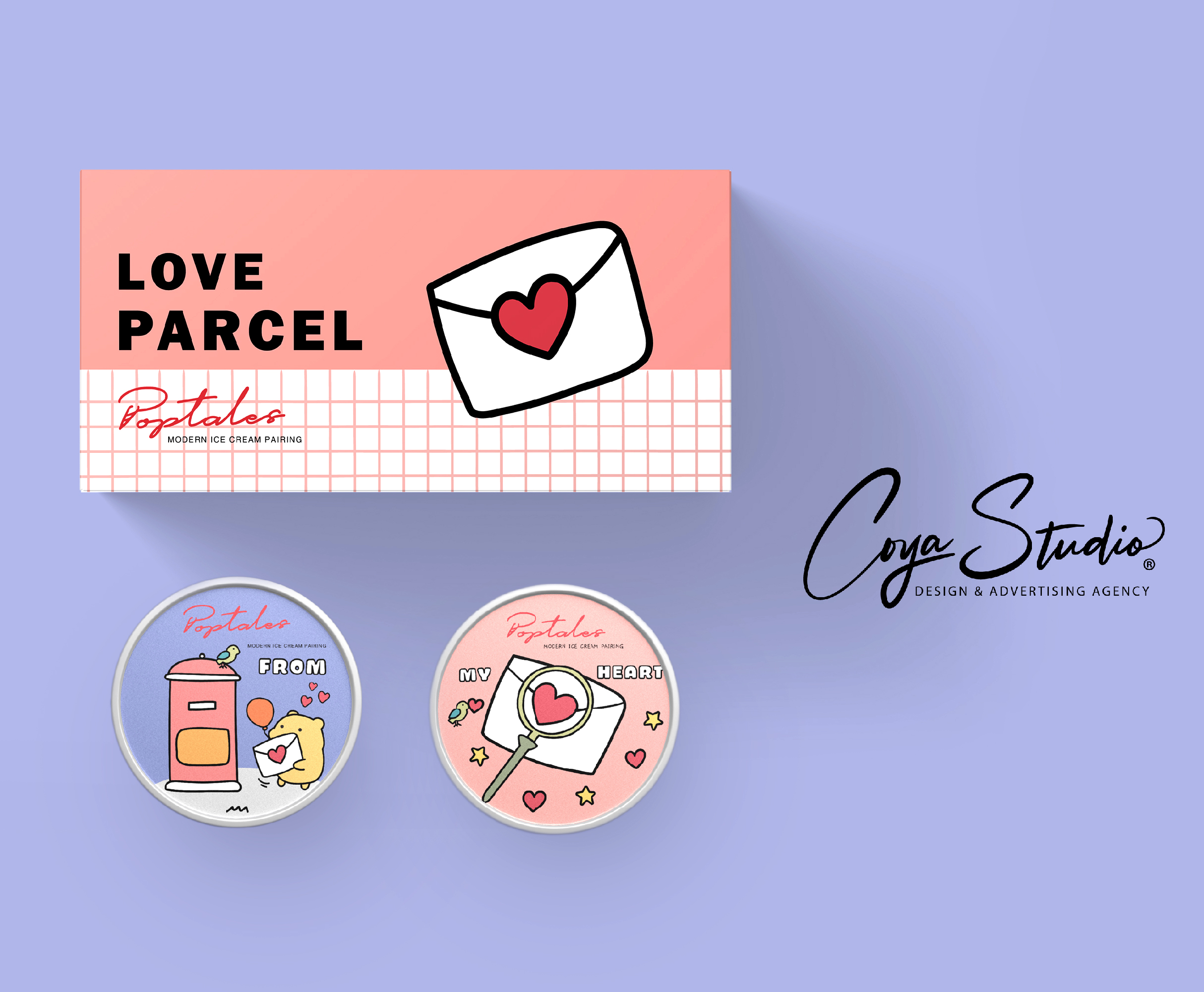 ผลงานออกแบบประกวด บรรจุภัณฑ์กล่องไอศครีมแบรนด์ Poptales ในคอนเซ็ปต์ Puppy Love เรานึกถึงเวลาที่เรารู้สึกดีดีกับใครบางคน สิ่งแรกคือสื่อออกไปให้เขาคนนั้นได้รับรู้ “พัสดุรักจากหัวใจ Love Parcel ” แทนความรู้สึกที่มีมากมาย ผลงานนี้ได้รับรางวัลชนะเลิศอันดับ 1 ในงานแข่งขันออกแบบบรรจุภัณฑ์ Fast Challenge Packaging Design